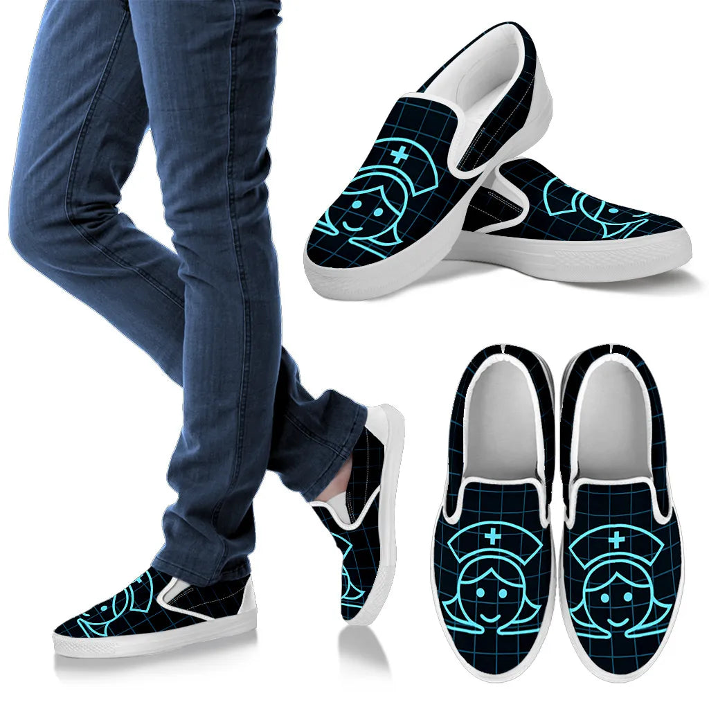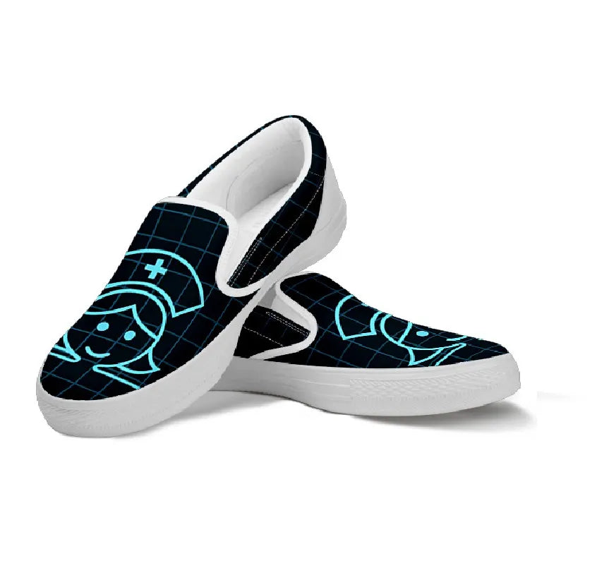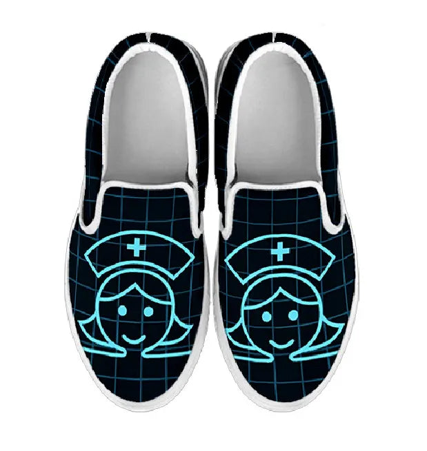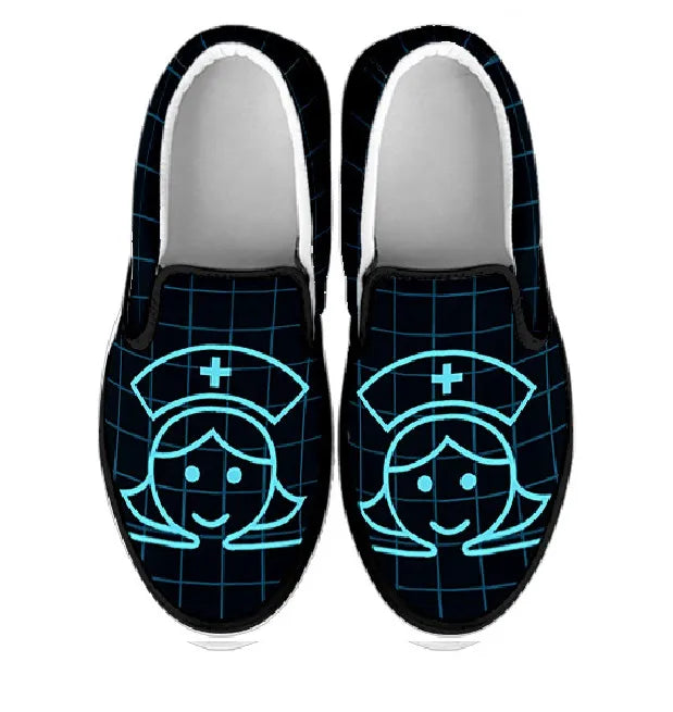 Schwarze Krankenschwester-Sneaker zum Hineinschlüpfen (Lächelnde Krankenschwester)