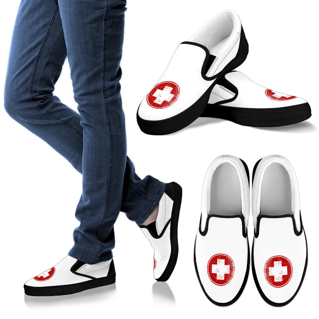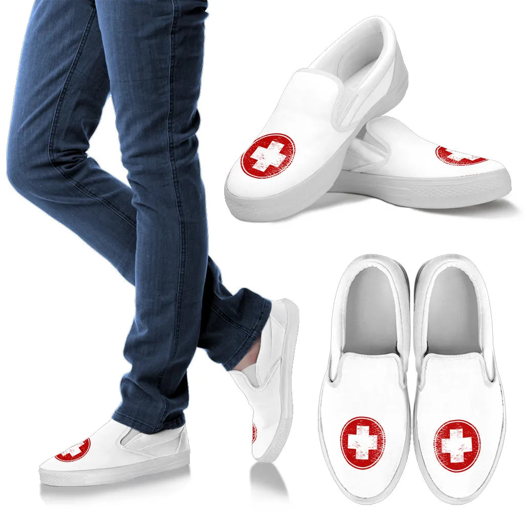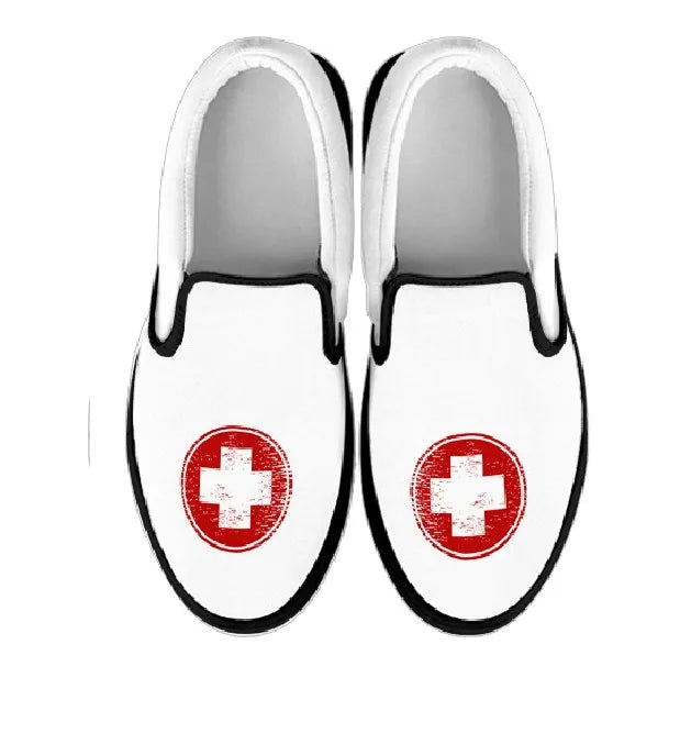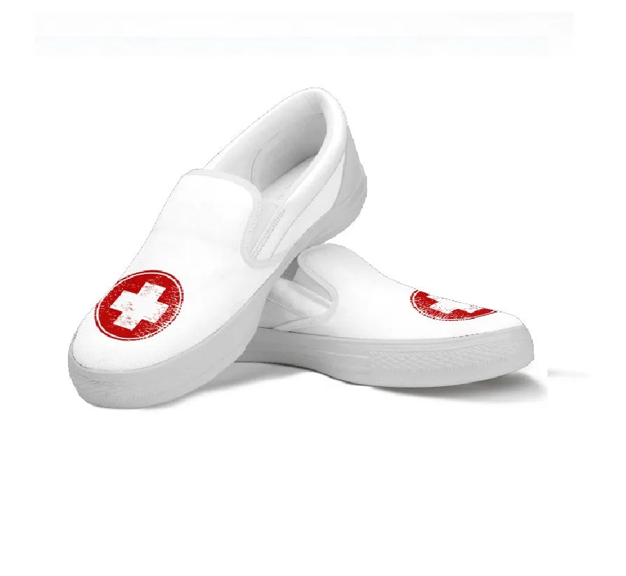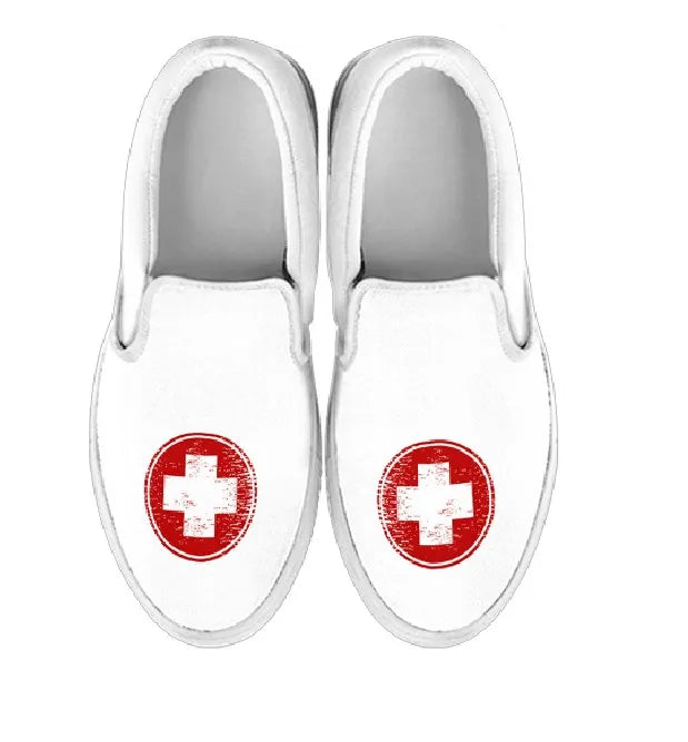 Zapatillas sin cordones con símbolo médico para enfermeras