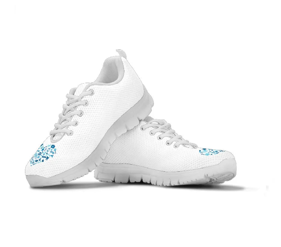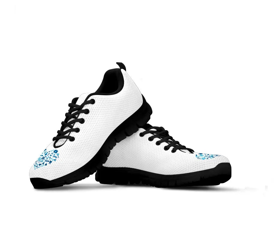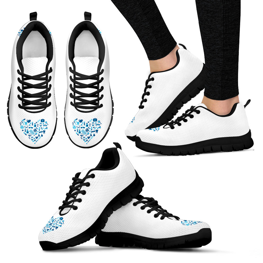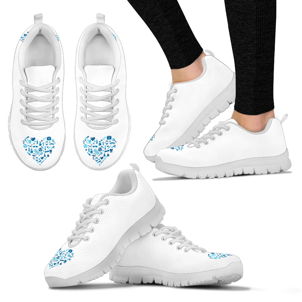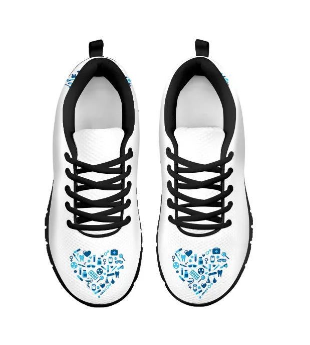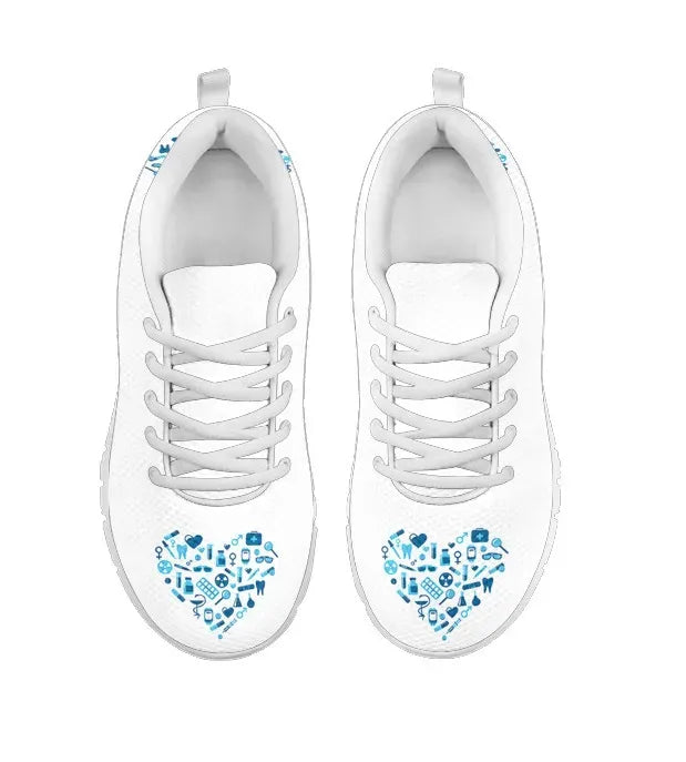 Ténis de Enfermagem Brancos com Coração Azul Claro